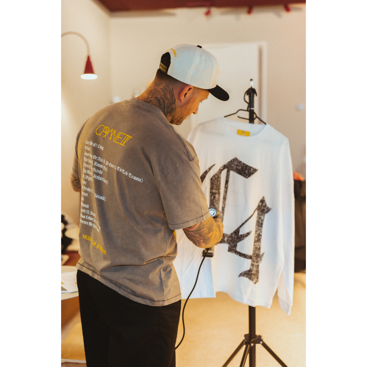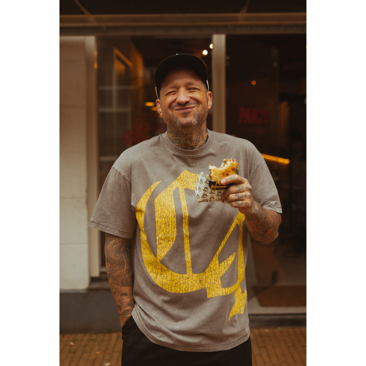 De C4 drop is de derde volwaardige merchandise collectie van Kraantje Pappie. De C4 is volledig geïnspireerd op het recent uitgebrachte album CRANE IV. De silhouetten, kleuren, items en pasvormen van deze collectie zijn gebaseerd op Kraan zijn dagelijkse kledingstijl. Hoe brengen we merchandise naar een nieuw level? Kunnen we verder gaan dan een goedkoop shirtje van lage kwaliteit met een logo erop? Kunnen we de fans echt waar voor hun geld geven met kleding die over een paar jaar nog steeds in goede staat verkeert? Ja, dat kan. Dat is de C4 collectie. De drop is zeer gelimiteerd, dus wees snel. Zoals altijd is op is op. We raden aan om de tee een maat groter te nemen